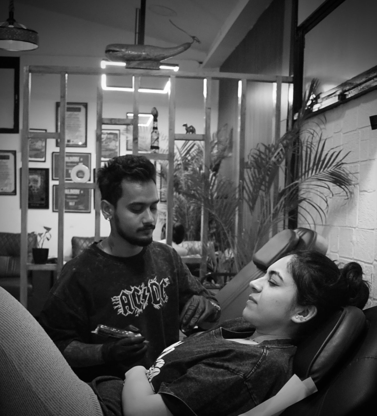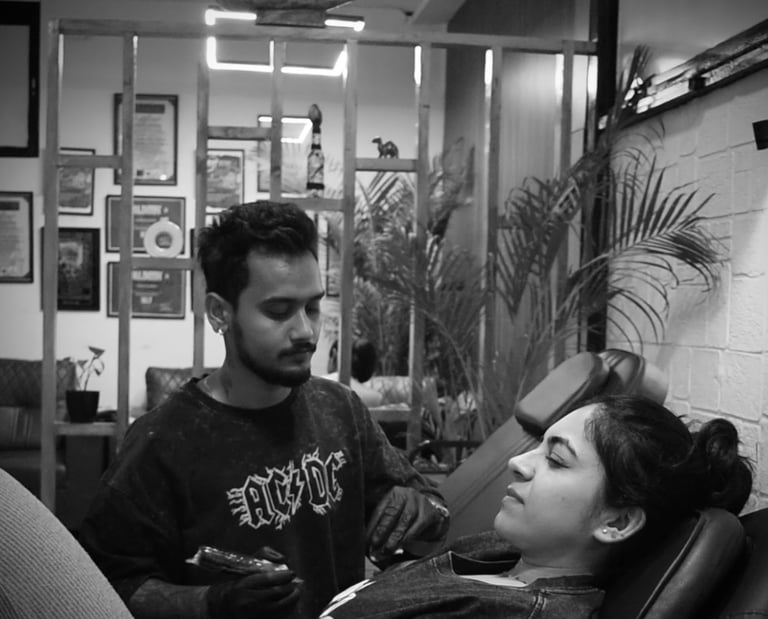 From the moment you walk in, you're welcomed into a space filled with artistic vibe, creative energy, and calm professionalism. We maintain world-class hygiene standards, use top-grade equipment, and follow safe, sterile procedures in every session β because your skin deserves respect.